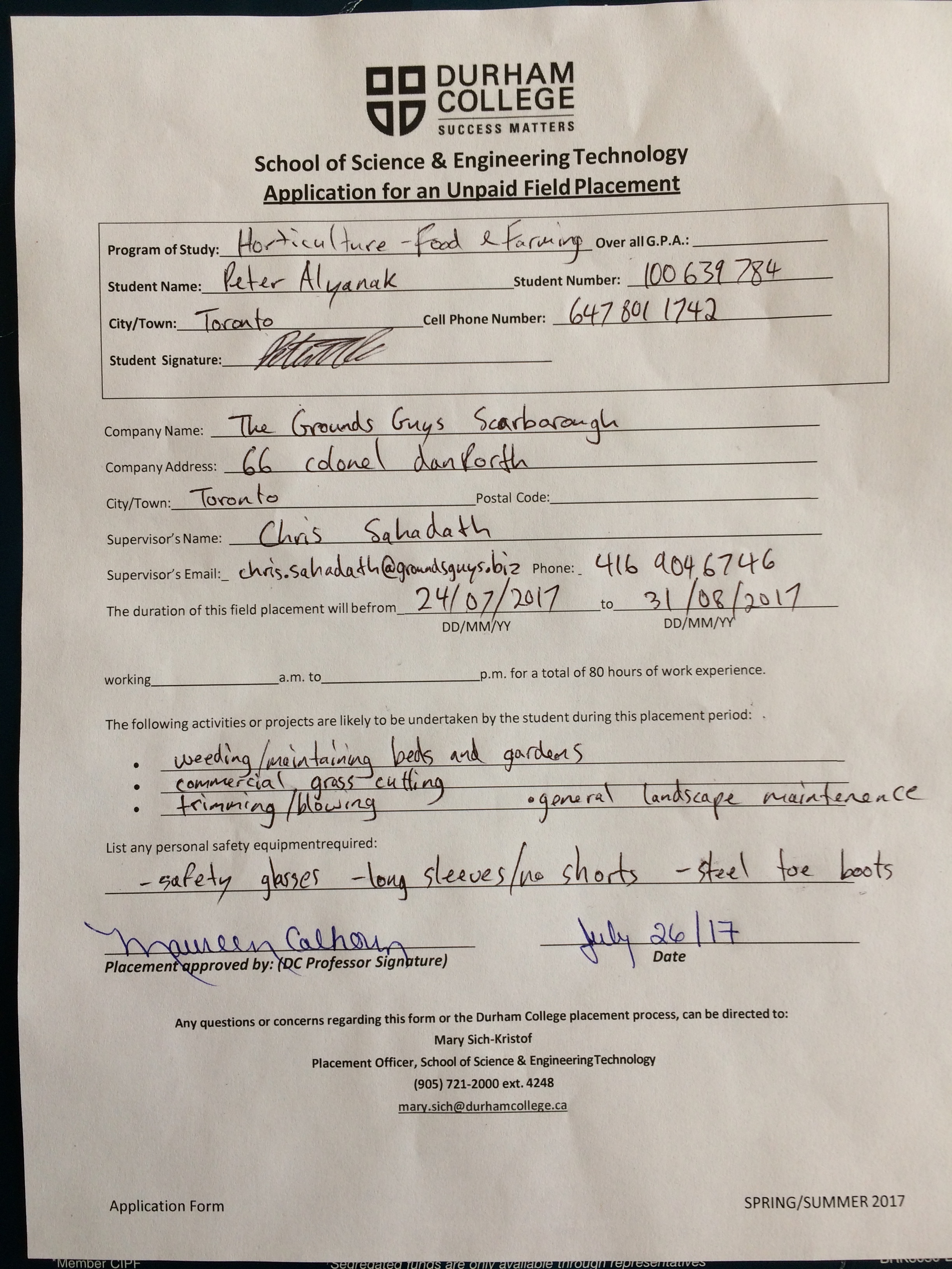 Horticulture Placement Info regarding the unpaid field placement I did last summer working with a landscaping company ("TheGroundsGuys").